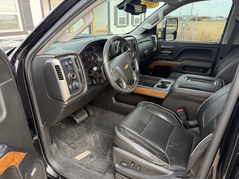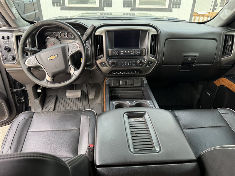 The 2019 Chevrolet Silverado 2500 High Country is a robust and capable truck, featuring a powerful Duramax 6.6L Biodiesel Turbo V8 engine that delivers an impressive 445 horsepower and 910 lb-ft of torque. This model comes equipped with a host of premium features, including a refined leather interior, heated and ventilated front seats, and advanced infotainment system with an 8-inch touchscreen display. It also offers Apple CarPlay and Android Auto compatibility for seamless smartphone integration. Additional features include a rearview camera, parking sensors, a premium audio system, and a power-adjustable driver's seat. The exterior showcases chrome accents, a distinctive front grille, and 20-inch alloy wheels, all contributing to its commanding presence on the road. Overall, this Silverado High Country is in excellent condition, ready to tackle any challenge with style and confidence.