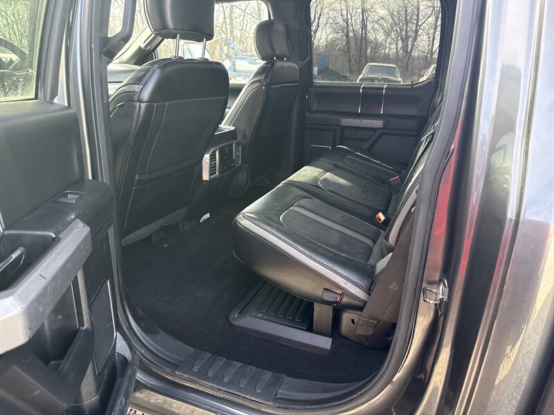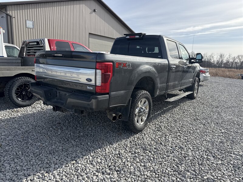 - Platinum trim arrives with premium exterior appointments straight from the factory: a distinctive, chromed and body-accented front grille, color-keyed bumpers and trim details, and polished alloy wheels matched to the Platinum specification. Standard exterior lighting includes bright headlamp assemblies and fog lamps with clear lenses; additional illumination features for the cargo box and integrated running boards are factory options on the Platinum package. Full-size bed and tailgate are built to Super Duty standards and include standard tie-down points and a factory-installed tailgate configuration optimized for heavy use.