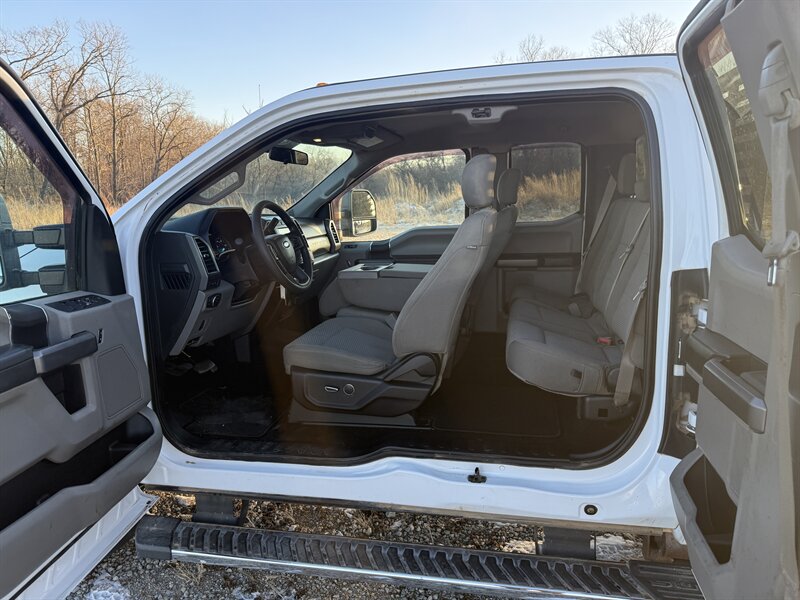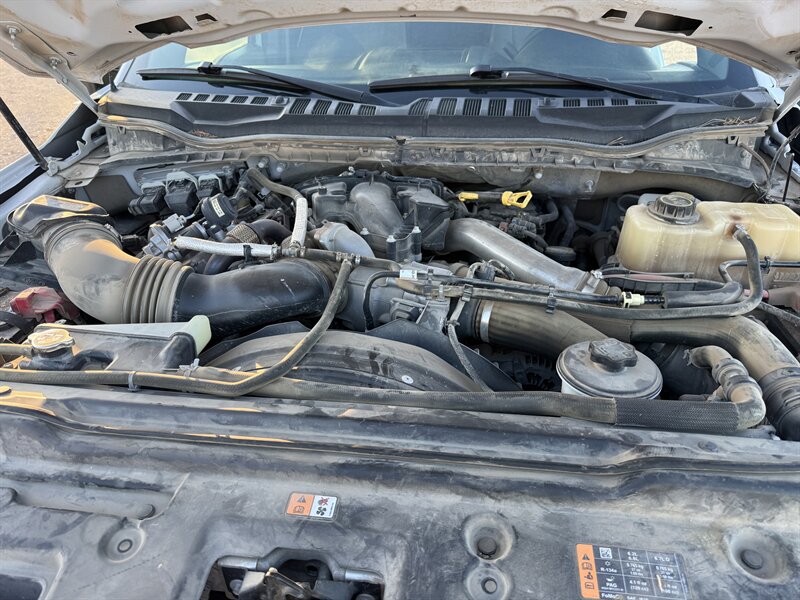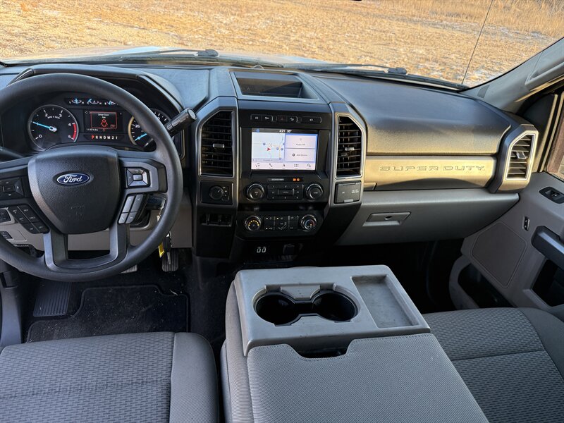 2019 Ford F-350 Super Duty XLT in Oxford White with Medium Earth Gray interior, powered by a Power Stroke 6.7L biodiesel turbo V8 (450 hp, 935 ft-lb). Factory-standard equipment includes heavy-duty Super Duty chassis and suspension, four-wheel ABS, traction and stability control, multiple airbags and a rearview camera; power windows, locks and mirrors with remote keyless entry, cruise control and air conditioning; durable cloth seating in Medium Earth Gray; and an AM/FM audio system with Bluetooth and USB connectivity. This vehicle is in excellent overall condition.