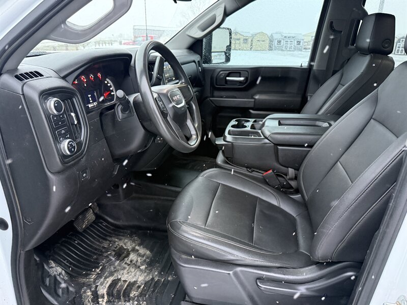 Inside the cabin, the Sierra 2500HD Pro offers a spacious interior designed for comfort and convenience. The front seats are upholstered in high-quality materials, ensuring a comfortable ride whether on long trips or short commutes. The driver is greeted by a straightforward dashboard layout featuring an 8-inch diagonal GMC Infotainment System touchscreen, which includes Bluetooth connectivity, Apple CarPlay, and Android Auto compatibility for seamless smartphone integration.